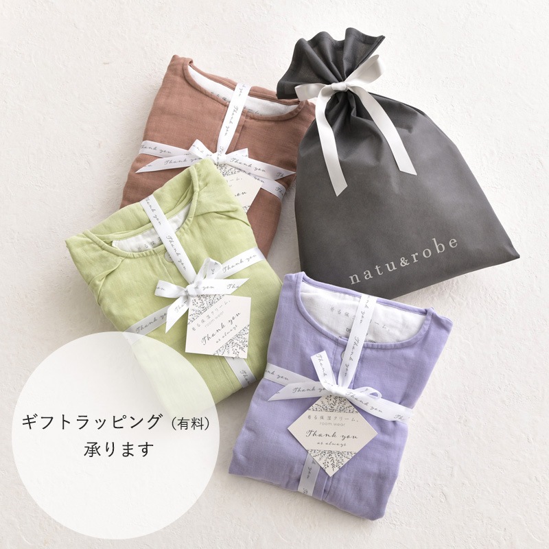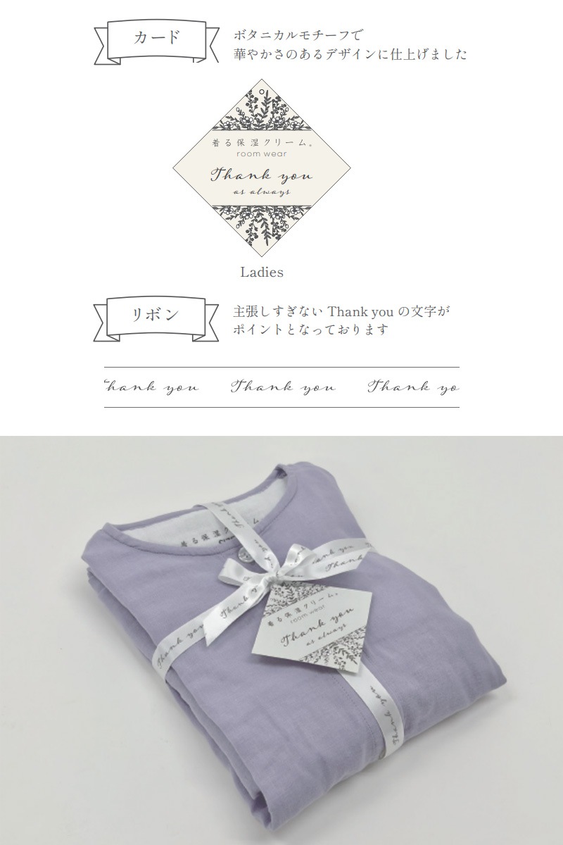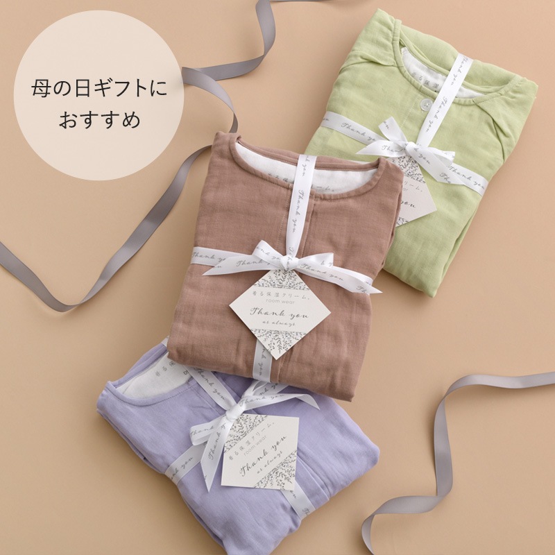 着る保湿クリーム 前開きラグラン袖スリーピングウェア/リボンラッピング仕様 mnr-0674 レディースパジャマ/ナイトウェア/おしゃれ/前開き/シンプル/ガーゼ/ギフト/肌触り/母の日 2025 プレゼント ギフト 花以外 実用的 メッセージカード/