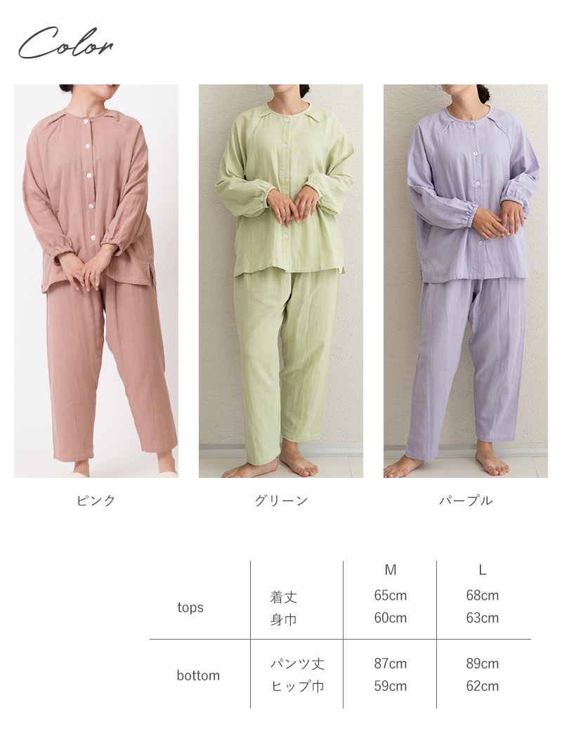 レディースパジャマ/ナイトウェア/おしゃれ/前開き/シンプル/ガーゼ/ギフト/肌触り/保湿/