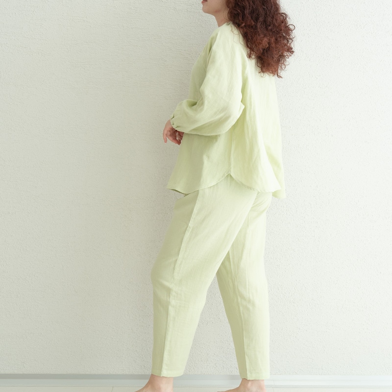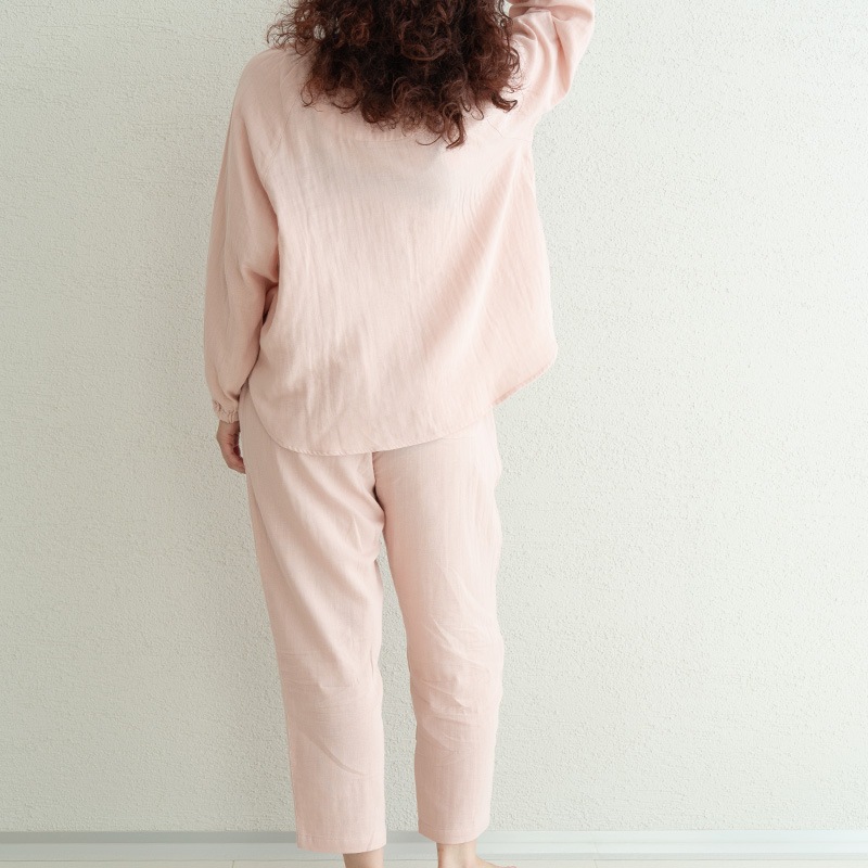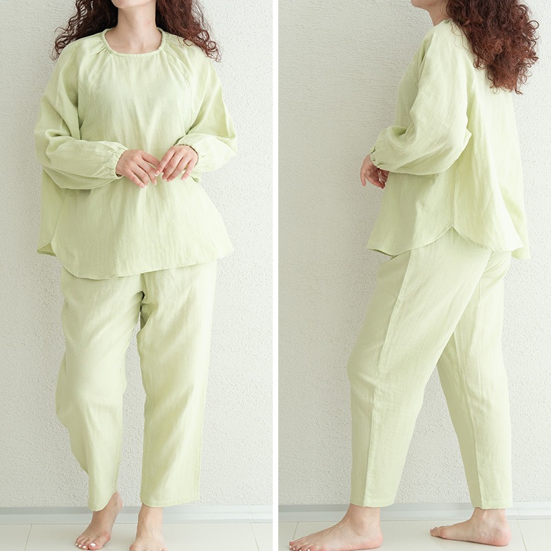 | 特徴 | ・保湿成分を配合したルームウェア しっとりとやわらかなWガーゼに天然由来成分をプラスした「着る保湿クリーム」のスリーピングウェア。トップスはゆったりとしたプルオーバータイプで、襟ぐり・袖口にはゴムが入っており着用もラクラク。ボトムスはすっきり履けるテーパード型でウエストには調整可能な紐がついています。飽きのこないシンプルデザインで、洗濯しても効果が持続するので、長くご愛用いただけます。 ・天然由来成分を贅沢に配合 生地に「シアバター」「オリーブオイル」「シルクアミノ酸」の3つの天然保湿成分を配合。贅沢成分でお肌をやさしく包み込みます。 ・快適な眠りをサポート 就寝後に汗をかくことで体温を調整し深い眠りにつくことができます。吸湿性があり通気性のいい綿100%のガーゼ素材は就寝中も快適な眠りをサポートします。 ・乾燥の季節も快適に 快適な睡眠環境は就寝中のエアコンなどによる乾燥から肌を守ることが大切です。水分率の高い生地を使用し包み込むような着心地と軽やかさで、乾燥の季節も快適に過ごせるやさしいスリーピングウェアです。 ・スリープセレモニーを印象付ける 就寝前にパジャマを着る行動は脳のスイッチを睡眠モードに切り替える効果があると言われています。リラックスしたシルエットで肌触りのいいパジャマを着用することでスリープセレモニーをより印象付けられ、快眠へと導きます。 |