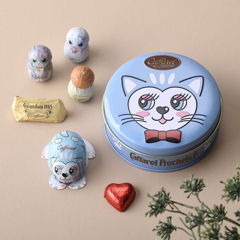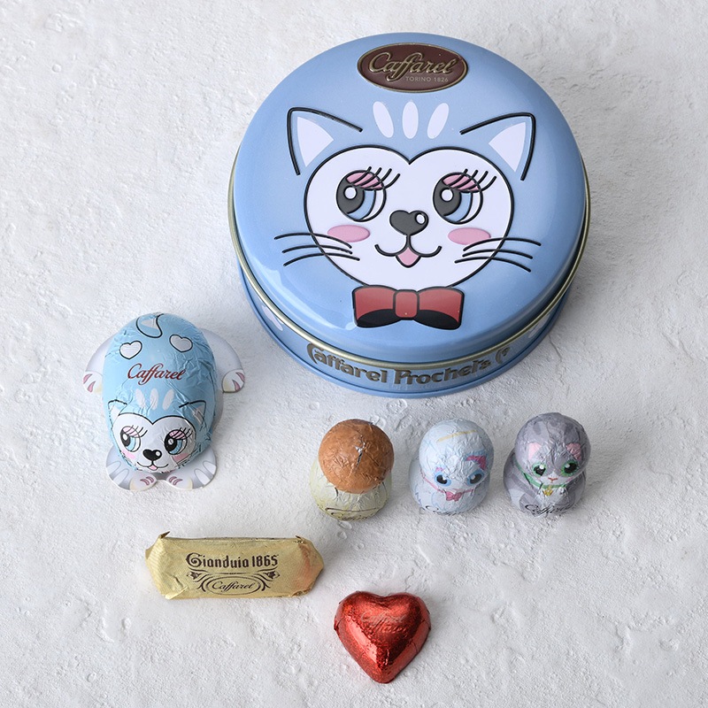 | 特徴 | ・かわいいネコのチョコレートアソート おすまし顔がキュートなネコの缶に、味や形の違うバラエティ豊かなチョコレートがアソートされたコレクションです。手にとるだけでワクワクするようなかわいさです。 ・お子さま向けのギフトにおすすめ もらってうれしいキュートな缶シリーズは、お子さま向けのギフトはもちろん、ホームパーティーや子ども会の景品など、パーティーシーンでも喜ばれること間違いなしです。チョコレートを食べ終わったあとは小物入れとしてもお使いいただけるので、楽しさが続きます。 ※ショッピングバッグ付きです。 ◆ジャンドゥーヤチョコレートとは ジャンドゥーヤチョコレートはカファレルが世界で初めて発明し、1869年にイタリア王室の御用達になりました。イタリア・ピエモンテ産のヘーゼルナッツペーストを28%も含む、くちどけなめらかで香り豊かなチョコレートです。 ◆ブランド Caffarel(カファレル) カファレル社は1826年にイタリアのトリノで創立されました。19世紀初頭、当時としてはまったく新しいタイプのチョコレート「ジャンドゥーヤ」を創りだし、以来、そのユニークで香り高くとろけるような舌触りを持つチョコレートは、ヨーロッパ各国のグルメから喝采を浴びつづけています。長い伝統と高い技術によって生み出されている気品ある味と香りは、現在、エレガントな贈り物として世界中の人々に愛されています。 ※チョコレートの包み紙のデザインは一例です。お色やデザインなど変更になる場合がございます。予めご了承ください。 |