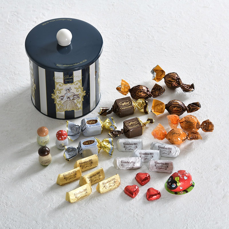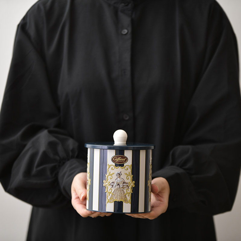 | 特徴 | ・イタリア王室が愛する贅沢チョコ イタリア王室が愛するチョコレートで、贅沢なひと時を。イタリアで190年以上の歴史を誇るチョコレートブランド、Caffarel(カファレル)のチョコレート詰め合わせポット缶です。カファレルの代名詞である「ジャンドゥーヤ」をはじめ、たっぷり26粒のチョコレートを詰め合わせました。 ・遊び心のあるかわいいパッケージ カファレルらしいストライプにアンティークなレディの柄があしらわれているデザイン。贈った方の笑顔が目に浮かぶようなかわいさです。バレンタインなどのギフトにもぴったりで、シーンを選ばずご利用いただけます。 ・小物入れとしても使える缶 おいしいチョコレートだけではなく、おしゃれなデザインの缶も大人気。チョコを食べ終わったあとのポット缶は、蓋付きで小物入れとしても最適。食べ終わった後もずっと楽しさが続きます。 ◆ジャンドゥーヤチョコレートとは ジャンドゥーヤチョコレートはカファレルが世界で初めて発明し、1869年にイタリア王室の御用達になりました。イタリア・ピエモンテ産のヘーゼルナッツペーストを28%も含む、くちどけなめらかで香り豊かなチョコレートです。 ◆製品の注意事項 チョコレートは高温になると油脂分が溶け、冷えると白く固まることがあります。風味のうえでは劣りますが、召し上がっても差し支えありません。 ◆ブランド Caffarel(カファレル) カファレル社は1826年にイタリアのトリノで創立されました。19世紀初頭、当時としてはまったく新しいタイプのチョコレート「ジャンドゥーヤ」を創りだし、以来、そのユニークで香り高くとろけるような舌触りを持つチョコレートは、ヨーロッパ各国のグルメから喝采を浴びつづけています。長い伝統と高い技術によって生み出されている気品ある味と香りは、現在、エレガントな贈り物として世界中の人々に愛されています。 |