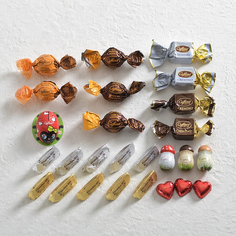 | 原材料名 | 砂糖、ヘーゼルナッツ、カカオマス、ココアバター、全粉乳、植物油脂、低脂ココアパウダー、脱脂粉乳、カカオニブ、砂糖菓子(砂糖、ブドウ糖シロップ、バター、クリーム、食塩)、バター、アーモンド、ブドウ糖シロップ/乳化剤(大豆由来)、香料(オレンジ由来)、膨張剤 ※含有アレルゲン28品目:乳、アーモンド、オレンジ、大豆 ※コンタミ注意喚起:くるみ、カシューナッツ |