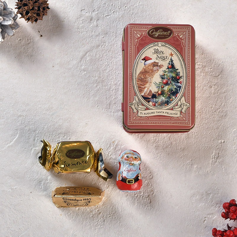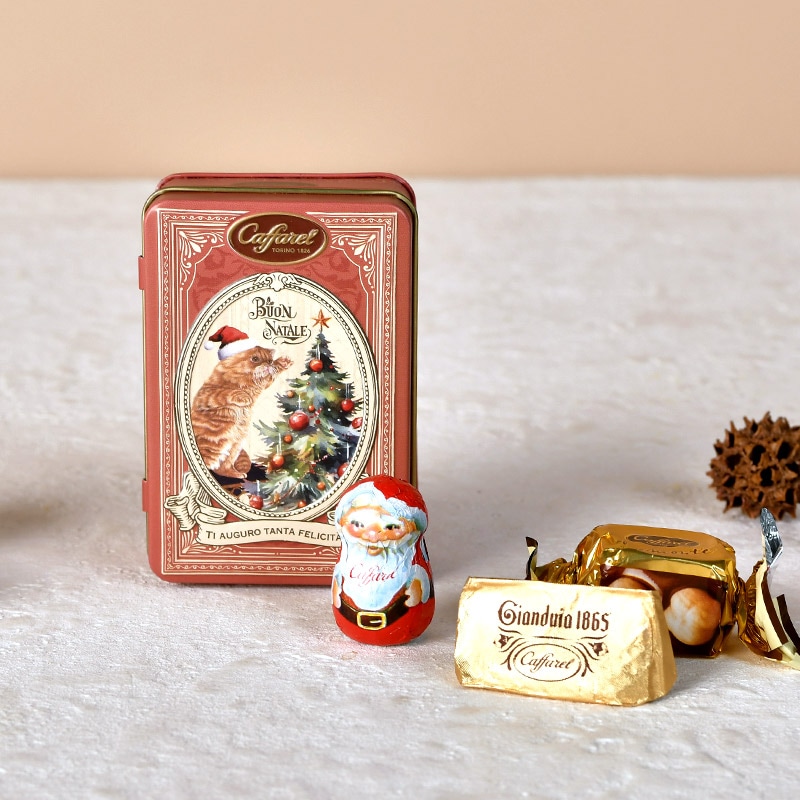Caffarel カファレル クリスマス小缶 NR-05042 カファレル チョコレート 缶クリスマス 2025/おしゃれ/かわいい/ギフト プレゼント/イタリア/贅沢チョコ/限定/詰め合わせ/ご褒美スイーツ/
