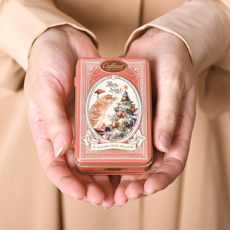 | 特徴 | ・心温まるデザインの限定クリスマス缶 毎年人気のカファレルの限定クリスマス缶。2025年は、カファレルの代名詞であるジャンドゥーヤの発明から160周年を迎えた記念すべき節目として、カファレルならではの世界観に「原点回帰」の思いを込めたデザインにしました。イタリアのアンティークな雰囲気を大切にし、ノスタルジックで温もりのある仕上がりになっています。 ・2025クリスマス限定パッケージ バッグの中に入れて、外出先やオフィスでもクリスマス気分とおいしいチョコレートを味わうことができます。くちどけなめらかなジャンドゥーヤとサンタやハートのホイルチョコレートがかわいい、贈り物にもおすすめのアイテム。チョコレートを食べ終わったあとは小物入れなどにもお使いいただけるので楽しさが続きます。 ◆ジャンドゥーヤチョコレートとは ジャンドゥーヤチョコレートはカファレルが世界で初めて発明し、1869年にイタリア王室の御用達になりました。イタリア・ピエモンテ産のヘーゼルナッツペーストを28%も含む、くちどけなめらかで香り豊かなチョコレートです。 ◆製品の注意事項 チョコレートは高温になると油脂分が溶け、冷えると白く固まることがあります。風味のうえでは劣りますが、召し上がっても差し支えありません。 ◆ブランド Caffarel(カファレル) カファレル社は1826年にイタリアのトリノで創立されました。19世紀初頭、当時としてはまったく新しいタイプのチョコレート「ジャンドゥーヤ」を創りだし、以来、そのユニークで香り高くとろけるような舌触りを持つチョコレートは、ヨーロッパ各国のグルメから喝采を浴びつづけています。長い伝統と高い技術によって生み出されている気品ある味と香りは、現在、エレガントな贈り物として世界中の人々に愛されています。 ※チョコレートの包み紙のデザインは一例です。お色やデザインなど変更になる場合がございます。予めご了承ください。 |