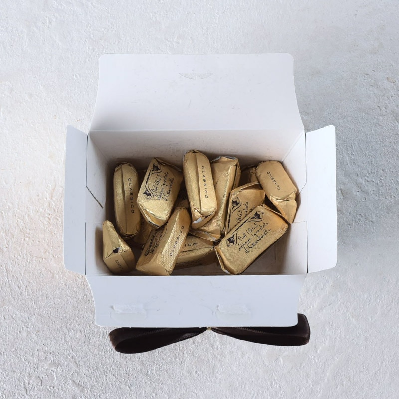 | 特徴 | ・イタリア王室が愛する贅沢チョコ イタリア王室が愛するチョコレートで、贅沢なひと時を。イタリアで190年以上の歴史を誇るチョコレートブランド、Caffarel(カファレル)のジャンドゥーヤ詰め合わせボックスです。クラシックなデザインのボックスに、カファレルの代名詞である「ジャンドゥーヤ」を12粒詰め合わせました。 ・できたてのような、とろける食感 Caffarel(カファレル)は絞り出したチョコが自然に固まるのを待つ「押出成形」という昔ながらの製法を続けており、その食感はまるで今できたばかりのように、ふんわりなめらか。とろけるような舌触りと豊かな余韻が残る濃厚な味わいが、世界中のスイーツ愛好家を魅了しています。 ・男性へのギフトにも最適なデザイン イタリアらしいクラシックなデザインのボックスは、バレンタインなど男性向けのギフトにもぴったり。しっかりお礼を伝えたい時のお返しや、がんばった自分へのご褒美など、プチ贅沢感が欲しい時にもおすすめです。 ◆ジャンドゥーヤチョコレートとは ジャンドゥーヤチョコレートはカファレルが世界で初めて発明し、1869年にイタリア王室の御用達になりました。イタリア・ピエモンテ産のヘーゼルナッツペーストを28%も含む、くちどけなめらかで香り豊かなチョコレートです。 ◆製品の注意事項 チョコレートは高温になると油脂分が溶け、冷えると白く固まることがあります。風味のうえでは劣りますが、召し上がっても差し支えありません。 ◆ブランド Caffarel(カファレル) カファレル社は1826年にイタリアのトリノで創立されました。19世紀初頭、当時としてはまったく新しいタイプのチョコレート「ジャンドゥーヤ」を創りだし、以来、そのユニークで香り高くとろけるような舌触りを持つチョコレートは、ヨーロッパ各国のグルメから喝采を浴びつづけています。長い伝統と高い技術によって生み出されている気品ある味と香りは、現在、エレガントな贈り物として世界中の人々に愛されています。 |