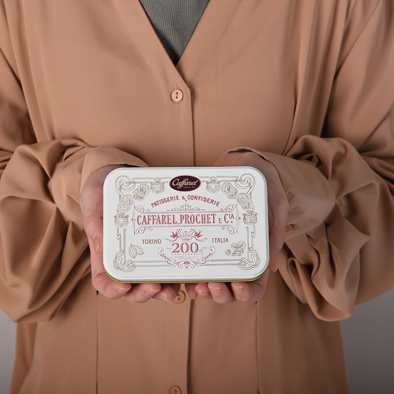 Caffarel カファレル 200周年スクエア缶 NR-05118 チョコレートギフト 贈り物/詰め合わせ アソート/おしゃれ シック/バレンタイン/缶/イタリア/カファレル/記念 アニバーサリー/お菓子 スイーツ/