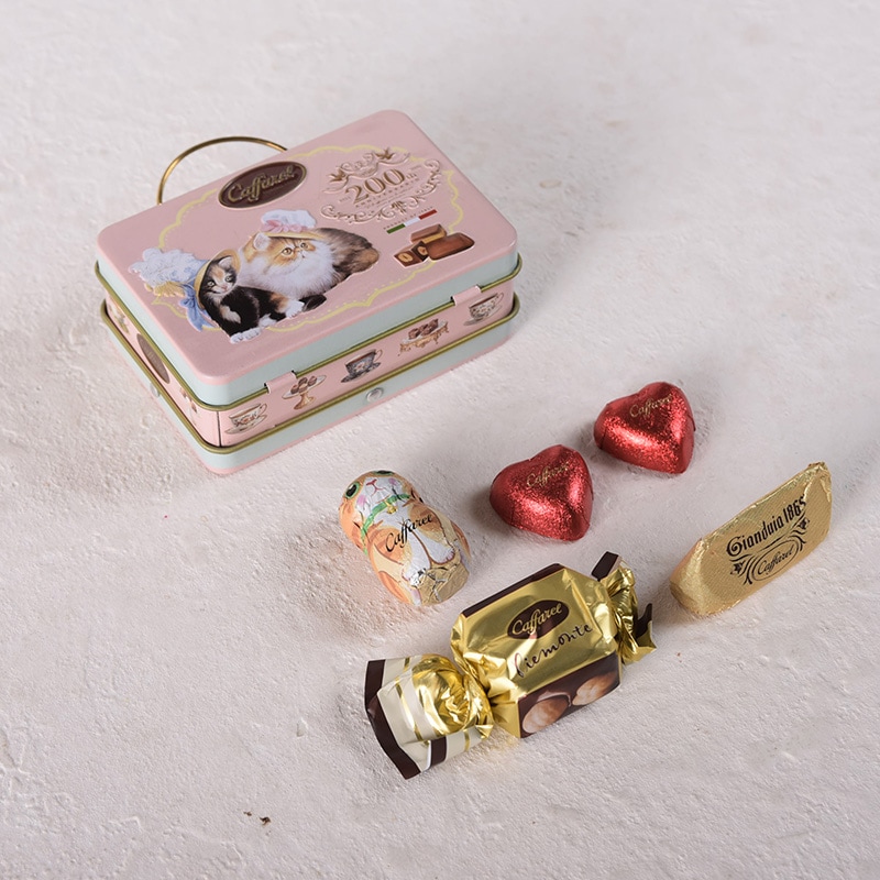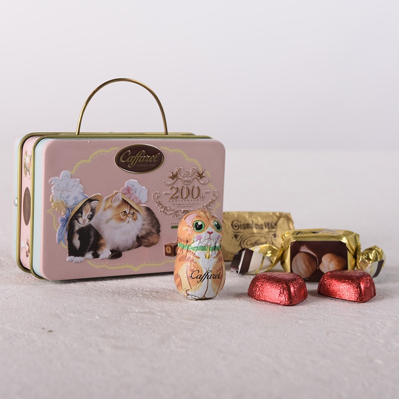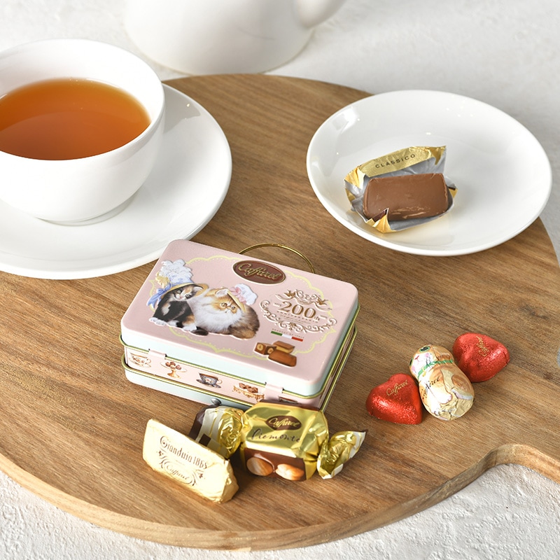 Caffarel カファレル ねこのティータイム トランク小缶 NR-05121 チョコレートギフト 贈り物/詰め合わせ アソート/おしゃれ かわいい/缶/イタリア/カファレル/記念 アニバーサリー/バレンタイン/お菓子 スイーツ/