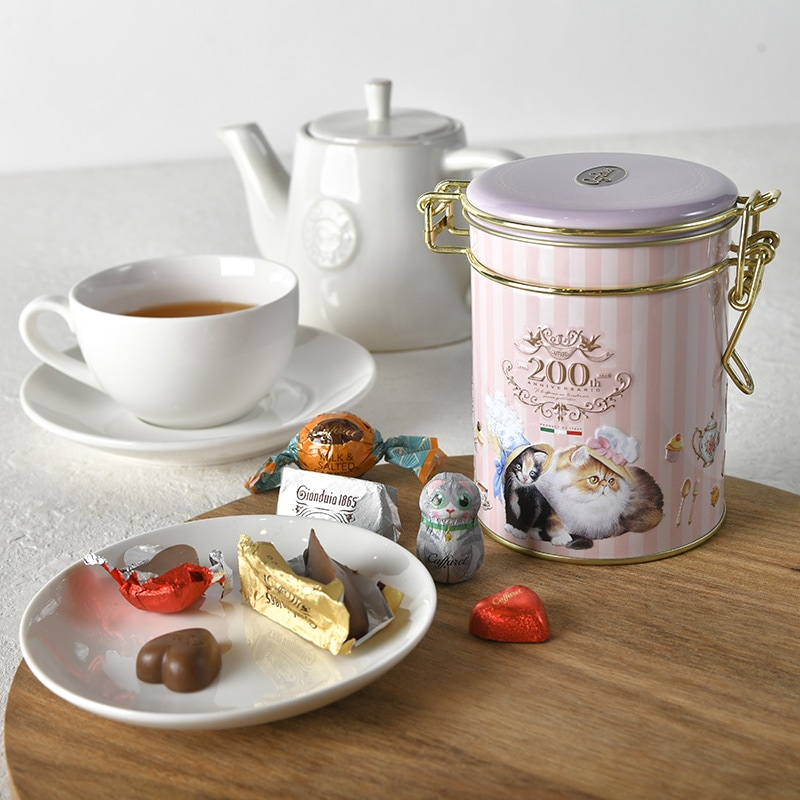 Caffarel カファレル ねこのティータイム キャニスター缶 NR-05122 チョコレートギフト 贈り物/詰め合わせ アソート/おしゃれ かわいい/缶/イタリア/カファレル/記念 アニバーサリー/バレンタイン/お菓子 スイーツ/