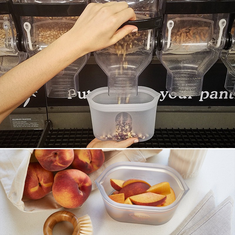| 特徴 | ・調理も保存もできて、くり返し使える保存袋 電子レンジ、湯煎、冷凍など、様々な調理方法や保存方法に対応するシリコンバッグ『Zip Top ディッシュ M』です。とても丈夫で洗ってくり返し使うことができるので、お財布にも環境にもやさしいエコな保存袋です。自立もするのでランチボックス代わりとしてもお使いいただけます。 ・丈夫で安全な素材を使用 しっかりと厚みのある丈夫なシリコーン製だから、安心してお使いいただけます。力強く引っぱっても破れず、誤ってフォークで刺してしまっても穴が空く心配がありません。また、BPA、鉛、フタル酸エステル、PVCを使用していないため、お子さまやアレルギーのある方にも安心してお使いいただけます。 ・つくって、食べて、保存もOK 電子レンジ、湯煎、冷凍など、様々な調理方法や保存方法に対応しています。食材を入れて調理し、そのまま食べて、余った分をそのまま保存することも可能です。カレーの冷蔵保存や、お肉の下味つけ、浅漬けづくりなど、幅広い調理や保存に重宝します。 ・自立するからお弁当箱としても マチが広いのでしっかり自立。スナックやフルーツなどのおやつを入れたり、チョップドサラダを入れてランチボックス代わりにしたり。持ち運び用のバッグとしても便利にお使いいただけます。 ・液体もOK 液体を入れても安定して自立するので、スープや手作りドレッシングなどにもぴったり。口をすぼめれば注ぎやすいので、煮汁を切る際などにもストレスフリーにお使いいただけます。 ・便利な食洗器対応 食洗器で洗えるのでお手入れもラクラク。洗ってくり返し使えるので、環境にもお財布にもやさしいサスティナブルなバッグです。 ・雑貨用のポーチとしても 食品の保存だけでなく、文房具やメイク道具など小物用のポーチとしてもお使いいただけます。 ・ぜひ、サイズ違いで揃えてください サイズ違いなら、使わない時はスタッキングしてコンパクトに収納することができます。3つのサイズが揃うだけで使い勝手の幅がグンと広がります。 ◆仕様 ・耐熱:約220℃まで ・耐冷:約-30℃まで ・電子レンジ〇 ・湯煎〇 ・冷凍〇 ・食洗機〇 ◆ブランド Zip Top(ジップトップ) 世界中で年間数億トンものプラスチックが生産され、その半分程度が使い捨てとして使用されていると言われており、海洋へのプラスチックごみの流出が大きな環境問題にもなっています。この問題を少しでも改善したいという想いから誕生しました。使い捨てのプラスチックバッグをいくつも使うのではなく、代わりに1個のZip Topに替えませんか? |