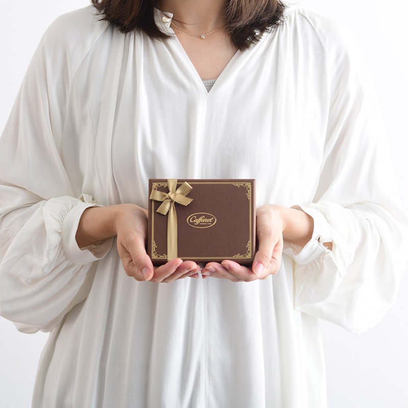 | 特徴 | ・人気のチョコが詰まったギフトボックス 光沢のあるゴールドカラーのリボンでラッピングされた上品なブラウンのボックスに、くちどけなめらかなジャンドゥーヤやピエモンテなど、カファレルを代表するチョコレート10粒がアソートされたギフトボックスです。 ・シーンを選ばないギフト 高級感に満ちたボックスは贈る相手やシーンを選びません。ご自身へのご褒美チョコレートとしてもおすすめです。 ◆ジャンドゥーヤチョコレートとは ジャンドゥーヤチョコレートはカファレルが世界で初めて発明し、1869年にイタリア王室の御用達になりました。イタリア・ピエモンテ産のヘーゼルナッツペーストを28%も含む、くちどけなめらかで香り豊かなチョコレートです。 ◆ブランド Caffarel(カファレル) カファレル社は1826年にイタリアのトリノで創立されました。19世紀初頭、当時としてはまったく新しいタイプのチョコレート「ジャンドゥーヤ」を創りだし、以来、そのユニークで香り高くとろけるような舌触りを持つチョコレートは、ヨーロッパ各国のグルメから喝采を浴びつづけています。長い伝統と高い技術によって生み出されている気品ある味と香りは、現在、エレガントな贈り物として世界中の人々に愛されています。 ・チョコレートの包み紙のデザインは一例です。お色やデザインなど変更になる場合がございます。予めご了承ください。 |