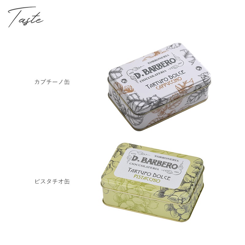 | 特徴 | ・100年以上の歴史を誇るイタリアの老舗チョコ ちょっとしたプレゼントや自分へのご褒美にぴったり。イタリアの老舗チョコレートブランド「BARBERO(バルベロ)」自慢のトリュフチョコレートが詰まった贅沢なチョコレート缶です。おいしいチョコレートだけでなく、おしゃれなデザインのボックスも大人気。缶ボックスは小物入れとしても使えるので、食べ終わった後もずっと楽しさが続きます。 ・集めたくなる素敵なデザイン イタリアならではのクラシカルでおしゃれなデザイン缶。小ぶりなサイズなので、バッグの中に入れて外出先やオフィスでもお楽しみいただけます。缶好きにはたまらない、ついつい集めたくなるアイテムです。 ◆テイスト ・ピスタチオ缶:ホワイトチョコレートにピスタチオ、ゲランドの塩でわずかに塩味を付けたトリュフチョコレート。 ・カプチーノ缶:ホワイトチョコレートの甘さとカプチーノの苦味が絶妙にマッチしたトリュフチョコレート。 ◆ブランド BARBERO(バルベロ) 1883年、イタリアのピエモンテ州にて創業した老舗のスイーツメーカー。130年以上にわたり、人々を魅了するスイーツづくりを続けています。伝統の職人技から生まれる歴史ある味わいを大切にした上質なスイーツは、老若男女を問わず人気を博しています。 |
