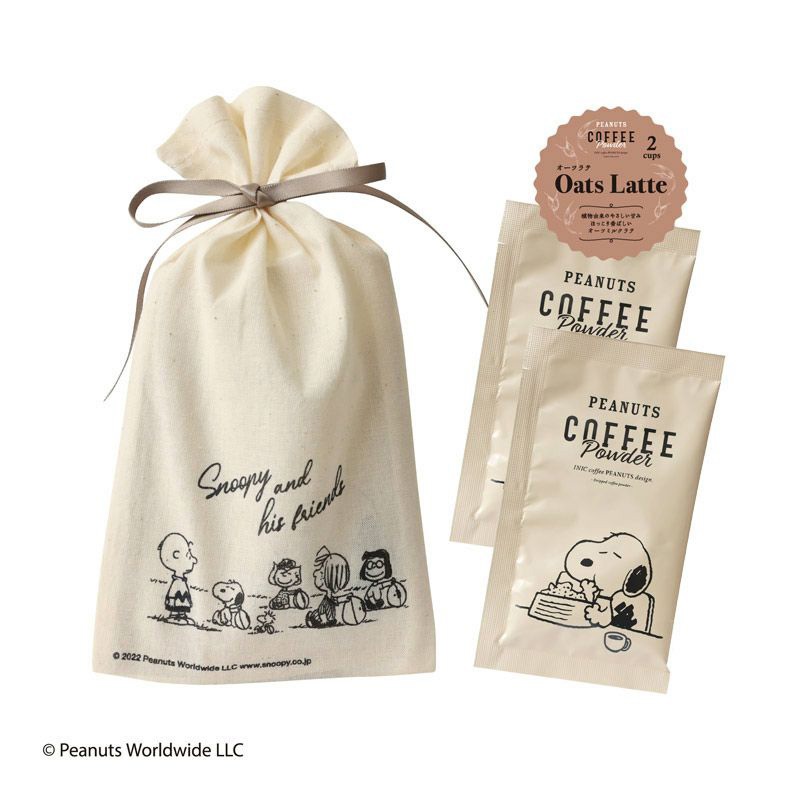 植物由来の香ばしくてクリーミーなオーツミルクラテ。スヌーピーのかわいいコットン袋入りでプチギフトにもぴったりです。