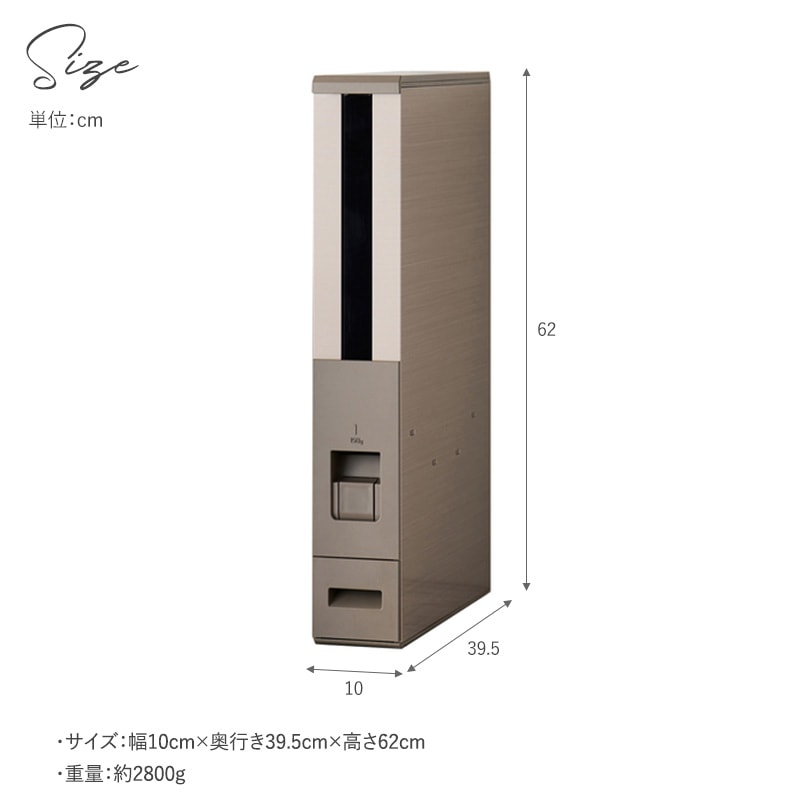 | サイズ/重量 | ・サイズ:幅10cm×奥行き39.5cm×高さ62cm ・重量:約2800g |
