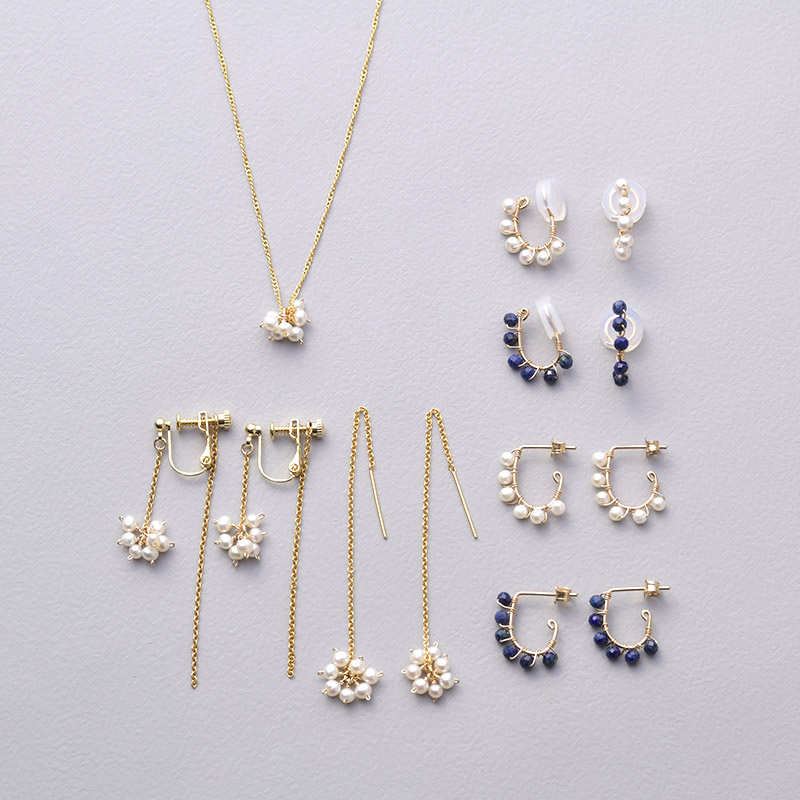 | 材質 | ・ネイビー:K14GF、ラピスラズリ ・ホワイト:K14GF、淡水パール |