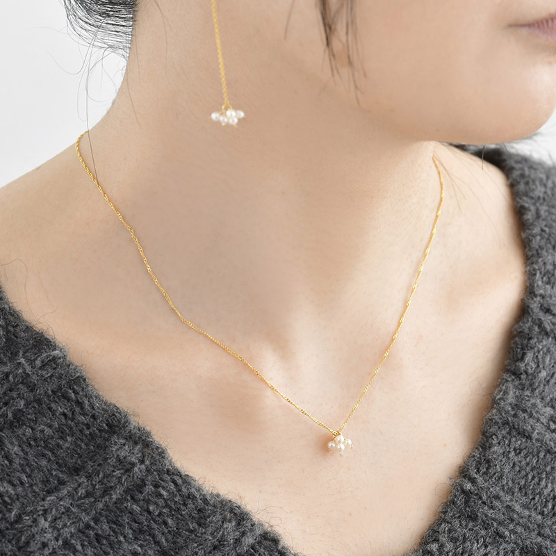 | 特徴 | ・小粒の天然石がかわいいネックレス 7石の小粒の淡水パールが、華奢でかわいいネックレス。淡水パールは甘すぎない大人のかわいらしさを演出します。デイリー使いやフォーマルシーン、様々なシチュエーションでお使いいただけます。 ・後ろ姿も美しい バックのアジャスターにも小さな淡水パールが1粒。後ろ姿のディテールまでも美しく上品なデザインです。 ・シンプルな装いとの相性抜群 白いカットソーや黒のニットなどとの相性抜群で、シンプルな装いにも合わせやすいネックレス。お洋服のアクセントに、さりげなくかわいいサイズ感です。毎日のコーディネートに取り入れてお楽しみください。 ・プレゼントにもおすすめ Natullyのロゴが入った白いポーチが付属します。ご自身用はもちろん、クリスマスプレゼントや記念日の贈り物にもおすすめです。 ・ピアスやイヤリングと お揃いのピアスやイヤリングと合わせれば、さらに素敵に。統一感が増して、上品なコーディネートの完成です。金具にはK14GFを使用しているので、お肌に優しく、長くご愛用いただけます。 ◆仕様 保証期間:半年間 付属品:ブランドロゴ入りポーチ(白) ◆製品の注意事項 天然石は形や輝きについて個体差がございます。天然素材のため、あらかじめご了承ください。 ◆ブランド Natully(ナチュリー) natural(自然に)と、beauty(美しさ)から生まれた造語。本物の輝きと自然の美しさを追求し、天然石やパール、シェルといった素材を吟味。そこに洗練された技術と手作りのあたたかさをプラスしたアクセサリーを創りだすブランドです。 |
