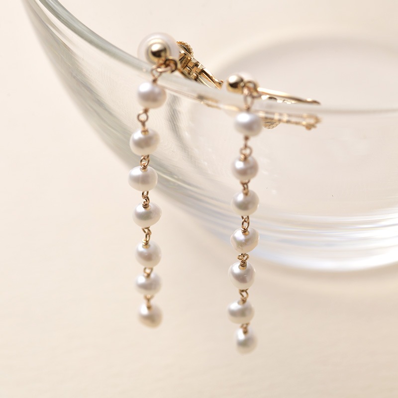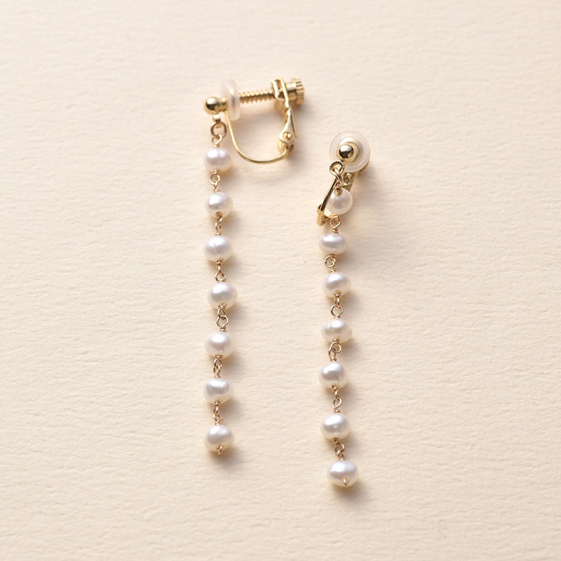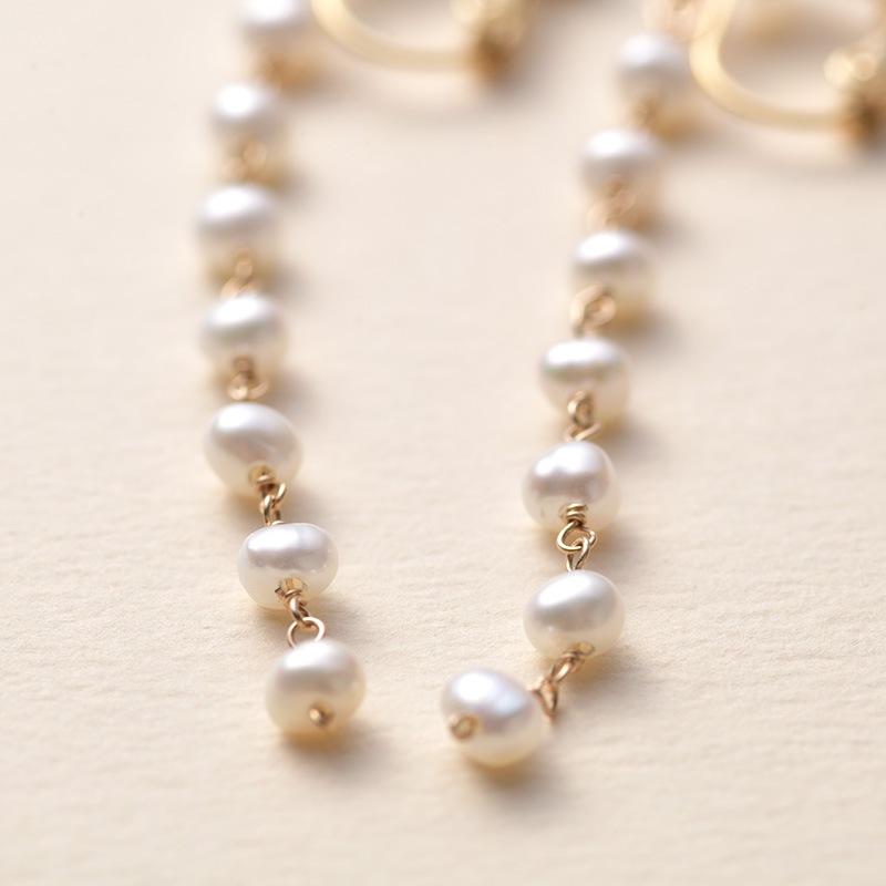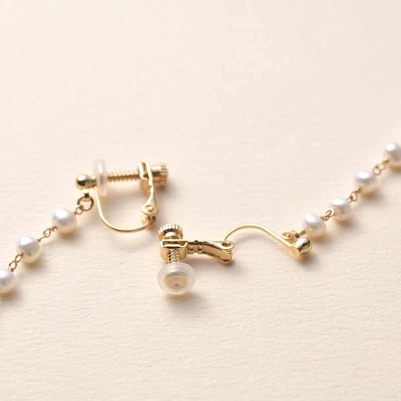 | 特徴 | ・軽やかなロングイヤリング 0.2cm程の小さな淡水パールを、ワイヤーで丁寧につなぎ合わせたイヤリング。小さいながらもつややかな照りのあるパールを厳選。ちょっと長めのデザインですが、小さなパールなので軽やかで、とても上品な印象に仕上がりました。ロングイヤリングを試したことのない方にもおすすめです。 ・オールシーズン活躍 春夏はカットソーに秋冬はニットと、フォーマルなシーンでも普段使いにも活躍。オールシーズン様々な表情がお楽しみいただけるアイテムです。 ・プレゼントにもおすすめ Natullyのロゴが入った白いポーチが付属します。耳元を華やかに演出してくれるイヤリングは、おしゃれにこだわりを持つ方や、特別なプレゼントにもおすすめ。お揃いのネックレスと合わせれば、さらに素敵に。統一感が増して、上品なコーディネートの完成です。 ・ネジバネ式で簡単装着 金具にはネジで幅を調整できる、ネジバネ式を採用。パカッと開いて簡単に装着できます。裏側にはシリコンのカバーが付いて落ちにくいので、安心してご使用いただけます。 ◆仕様 保証期間:半年間 付属品:ブランドロゴ入りポーチ(白) ◆製品の注意事項 淡水パールは形や輝きについて個体差がございます。天然素材のため、あらかじめご了承ください。 ◆ブランド Natully(ナチュリー) natural(自然に)と、beauty(美しさ)から生まれた造語。本物の輝きと自然の美しさを追求し、天然石やパール、シェルといった素材を吟味。そこに洗練された技術と手作りのあたたかさをプラスしたアクセサリーを創りだすブランドです。 |