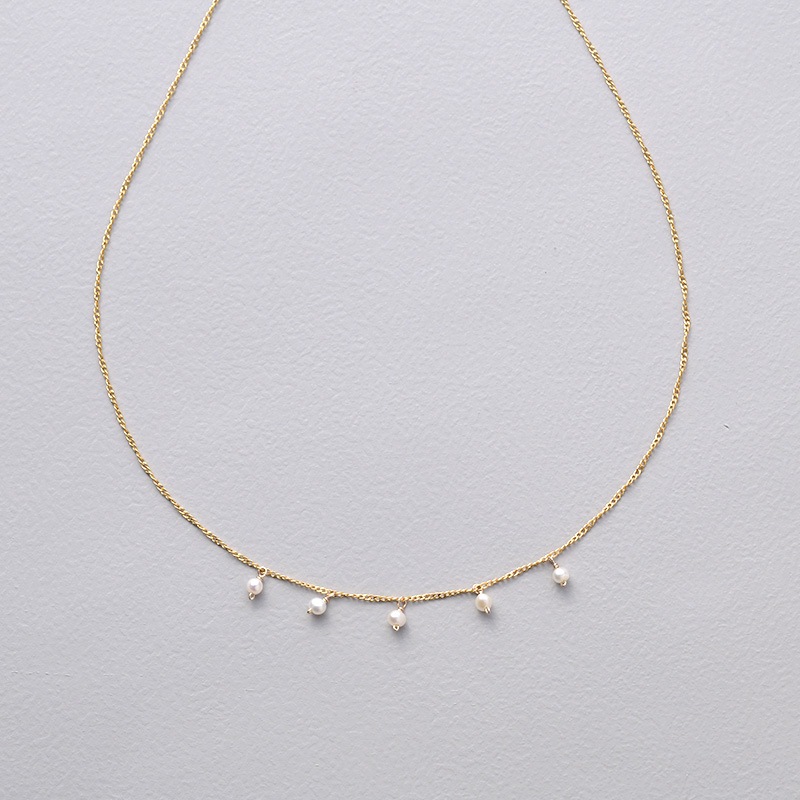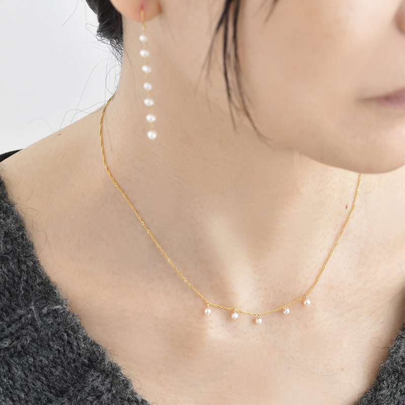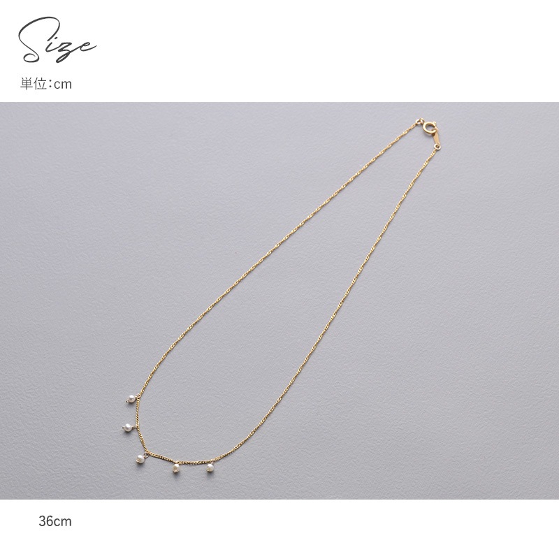 | 特徴 | ・首元にぴたりの長さのネックレス 首元に沿うようにさりげなく身に着けられる、繊細なパールのついた短めのネックレス。使用している淡水パールは、サイズ0.2cm~0.25cmの小さな淡水パール。前方の鎖骨ラインに、この小さな淡水パールが揺れるチャームのようについています。 ・重ね付けしやすいチョーカーサイズ 重ね付けしたときに絡みにくいように、アジャスターがない仕様になっています。通常のネックレスは40cmが一般的ですが、36cmと短めなのでチョーカーとしてお楽しみいただけます。 ・長く愛用できるネックレス ゴールド部分は上品な輝きのK14GFを使用。お肌にもやさしいので長くご愛用いただけます。 ・プレゼントにもおすすめ Natullyのロゴが入った白いポーチが付属します。デコルテを華やかに演出してくれるネックレスは、おしゃれにこだわりを持つ方や、特別なプレゼントにもおすすめ。 ◆仕様 保証期間:半年間 付属品:ブランドロゴ入りポーチ(白) ◆製品の注意事項 淡水パールは形や輝きについて個体差がございます。天然素材のため、あらかじめご了承ください。 ◆ブランド Natully(ナチュリー) natural(自然に)と、beauty(美しさ)から生まれた造語。本物の輝きと自然の美しさを追求し、天然石やパール、シェルといった素材を吟味。そこに洗練された技術と手作りのあたたかさをプラスしたアクセサリーを創りだすブランドです。 |
