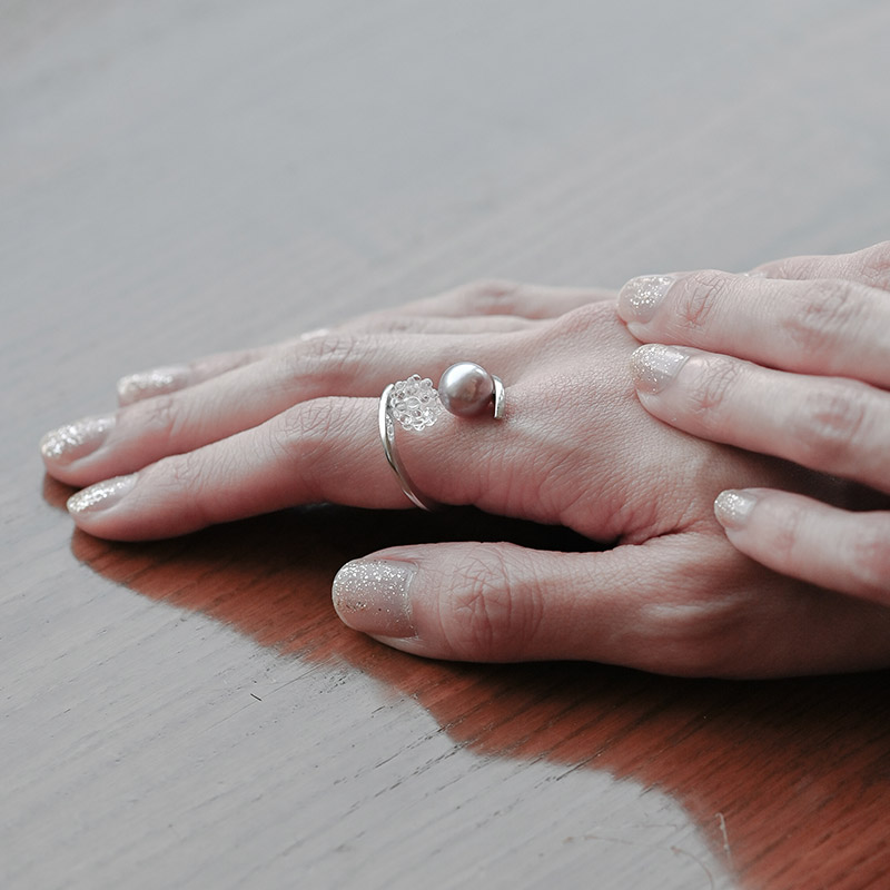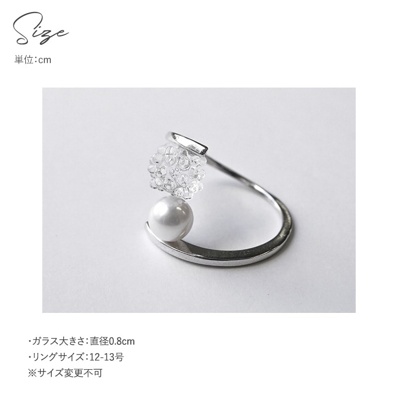 アクセサリーレディース/指輪/リング/ガラス/パール/おしゃれ/日本製/ハンドメイド/ギフト/