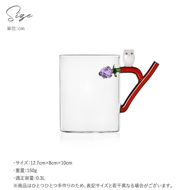 ICHENDORF MILANO イッケンドルフミラノ フルーツアンドフラワー マグ フクロウ NR-04758 マグカップデザインマグ/ガラス/おしゃれ かわいい/ハンドメイド/モチーフ/ガラス食器/ユニーク/ギフト/インテリア/
