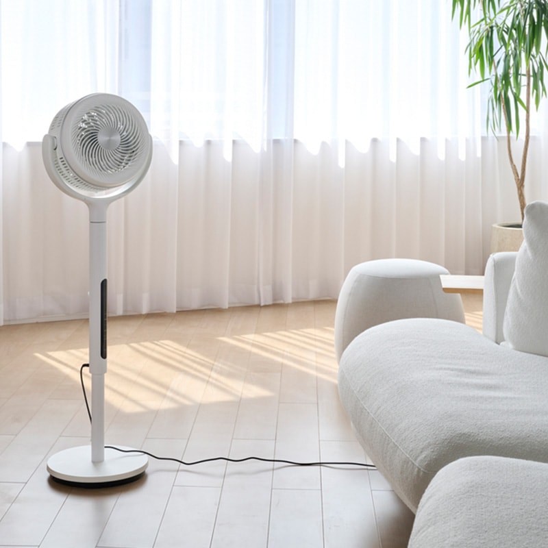 | 特徴 | ・遮られない大風量 モーターを本体背面ではなく、2枚の羽根の間に設置。背面から大量の風を取り込み、2枚の羽根で送り出す「Wファン構造」で、パワフルな風量を実現したサーキュレーター扇風機。1枚羽根の場合と比べて風速は約35%アップ。最大約14m先まで風を届けます。 ・上下左右立体的に首を振る3D首振り 背面にモーターがないことで、上下の首振り角度も広範囲に。3D首振りで部屋中の空気をかくはんし、サーキュレーターとしても活躍します。 ・8段階の風量調節 心地よく眠れる静かな風から、洗濯物の乾燥に最適なパワフルな風まで、風量調節は8段階、1台で何役もこなします。冷暖房の効率アップ、就寝時の涼取り、室内換気、部屋干し乾燥など、幅広いシーンでお使いいただけます。 ・113cmのハイポジション 家具に遮られることなく、高い位置から部屋中に風を届けます。支柱部分のパイプを外せば、標準的な高さの87cmでも使用可能。エアコンと併用して使用することでより快適な室内空間へ導きます。冷気や暖気をお部屋に効率的に循環することができ、節電にも繋がります。 ・便利な背面フィルター フィルターでほこりを捕集し、羽根の汚れを軽減します。お手入れの手間が省ける嬉しい仕様。 ・おやすみモードで心地よい眠りを 設定した風量レベルで運転を開始し、30分ごとに風量を1段階ずつ下げます。風量レベル1になると、そのままの風量で運転を続けます。また、ランプの明るさが通常時よりやや暗くなり、風量、スイング(首振り)、タイマーボタン操作時の操作音は鳴りません。 ・使い勝手のいい機能が満載 ソファに座ったままなど、離れた場所からでも操作できるリモコンが付属。基本操作に加え風向きの調節も可能です。4段階に設定できるON/OFFタイマー機能や、お子さまやペットのいるご家庭でも安心のチャイルドロック機能付き。さらに、15時間経過すると運転を停止する自動電源オフ機能も搭載しました。 ◆仕様 ・電源:交流100V 50/60Hz ・消費電力:20W ・風量:8段階 ・モード:ターボ、おやすみ、リズム ・首振り:左右2段階(自動)、上下2段階(自動) ・対応畳数:約21畳 ・付属品:ACアダプター、リモコン(テスト電池付き)、リモコンホルダー、取扱説明書(保証書) ◆ブランド siroca(シロカ) 「おいしい」や「心地いい」、そして「うつくしい」。そうした小さな幸せは、あたりまえの日々を豊かに彩る隠し味です。sirocaは、やさしい家電をとおして毎日に寄り添い、喜びのひとときを増やしたいと考えています。ていねいに、こだわって暮らす、みなさまとともに。 |
