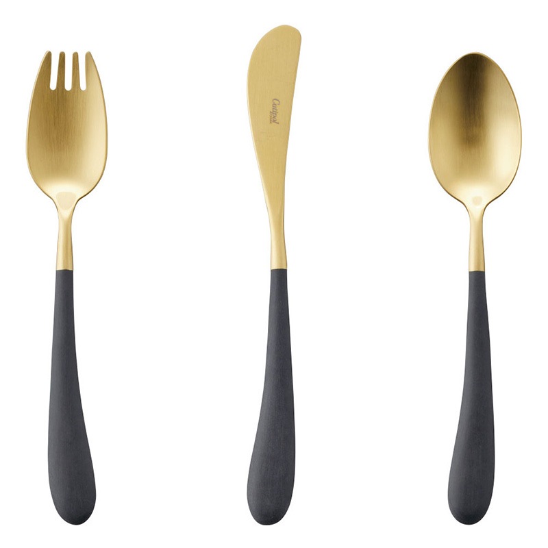 Cutipol クチポール アリス 3本セット ブラック(ゴールド) nr-04860 カトラリーセット子ども用 子供用/おしゃれ/ギフト/プレゼント/フォーク/ナイフ/スプーン/テーブルマナー/入園祝い 入学祝い 七五三/