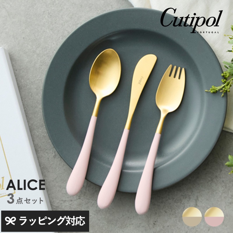 Cutipol クチポール アリス 3本セット mnr-0841 カトラリーセット子ども用 子供用/おしゃれ/ギフト/プレゼント/フォーク/ナイフ/スプーン/テーブルマナー/入園祝い 入学祝い 七五三/