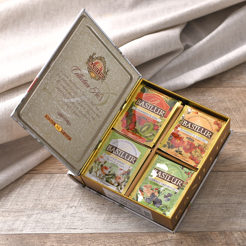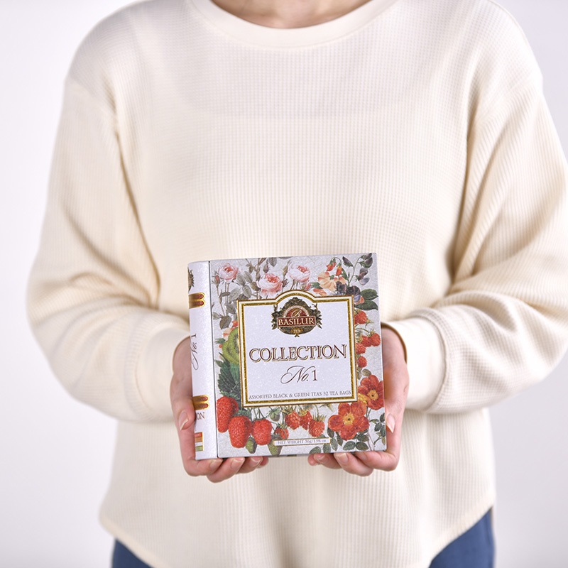 | 特徴 | ・大切な方へのプレゼントに 心地よいフルーツフレーバーティーとグリーンティーベースのフレーバーティーをブックタイプのパッケージにアソートしました。全4種類のティーバッグがそれぞれ8袋、合計32袋とたっぷり入っており、内祝いやお歳暮など大切な方への気持ちのこもったプレゼントや自分へのご褒美にもおすすめです。 ・思わず飾りたくなるパッケージ 鮮度や茶葉へのこだわりはもちろん、パッケージデザインにも徹底的にこだわっているバシラーティー。パッケージこそ、洗練された茶葉をお届けするに相応しいデザインが求められると考えており、ヨーロッパ専属デザイナーの演出する、個性溢れるユニークで気品漂うデザインは、皆さまにいつもとは少し違ったティータイムをご提案します。 ・簡単に手間なく、ほっと一息 ティーバッグなので、煮出す手間なく気軽にお召し上がりいただけます。忙しい日常には嬉しい手軽さで、ほっと一息、厳選された上質の茶葉が素敵なリラックスタイムへと導きます。 ◆テイスト ・ストロベリー&キウイ:セイロンブラックティーをベースにフルーティーなストロベリー&キウイが香ります。バシラーティーでNO.1の人気フレーバー。 ・ラズベリー&ローズヒップ:セイロンブラックティーがベースのローズヒップとラズベリーフレーバー。程よく甘酸っぱいフレーバーの組み合わせ。 ・グリーンフレッシュネス:緑茶ベースのフレーバーティー。ミントのすっきりしたフレーバーが気分をスッキリさせてくれます。 ・ホワイトマジック:包み込むように香るミルキーなアロマは癒し効果抜群。微かに残るグリーンティーの後味がやみつきになります。 ◆ブランド BASILUR TEA(バシラーティー) 歴史あるセイロンティー原産国スリランカの紅茶ブランド。 広大で自然豊かなスリランカの大地で丁寧に栽培された茶葉は、上質な香りと深い味わいをもち、皆さまの特別な時間を上品に彩ることをお約束します。 |