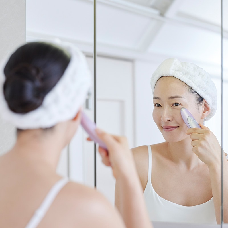 | 特徴 | ・進化した目元美顔器 クリアージュから待望の新商品、目元美顔器「アイリフトプラス」が新登場。進化したアイリフトはタッチパネル搭載で簡単操作。どなたでも気軽にご使用いただけます。 ・生き生きとした目元へ 独自開発の低・高周波EMS&ヒータで、気になる目元や口元のケアができます。細かい部位にもフィットする形状で目元を持ち上げながら筋肉をケア。表情筋へアプローチし、生き生きとした目元を演出します。 ・大小2つの電極ヘッド 大小2つの電極ヘッドを使い分ければ、デコルテや肩など、部位によってお好みのケアがお楽しみいただけます。約39℃の心地よい温感でお肌を温めるヒーター機能(電極ヘッド大のみ)で、デコルテや肩のケアのほか、どんより感のある目元や小じわが気になる口元のケアにも活躍します。 ・お好みのレベルに調整可能 リフトモード・スパモードの2種類のモードに、LOWとHIGHの2段階のレベルを搭載。心地よい刺激を感じるお好みのレベルに調整可能です。 ・嬉しい防滴仕様 本体はIPX3の防滴仕様。シャワーや水道の蛇口から出る強い水圧や水中には対応していませんが、お風呂上りにすぐケアができる嬉しい仕様です。 ・持ち運びもラクラク 手の平におさまるコンパクトなボディ。60gと軽量なので旅行や出張先への持ち運びもラクラクです。 ・安心して使える機能搭載 電源を入れてから約10分が経過すると自動でオフになる「オートオフ機能」や、電源を入れて約3分間操作が行われないと誤作動防止のためにタッチ操作がロックされる「ロック仕様」。安全に使用できる機能搭載で安心の美顔器です。 ◆仕様 ・電源定格:DC5V 0.4A ・消費電力:約3W(本体充電時) ・使用電池:リチウムイオン蓄電池 ・充電時間:約2時間 ※充電環境によって充電時間は前後します。 ・防水機能:IPX3 ◆付属品 充電代、USBケーブル(長さ0.5m Type-C)、取扱説明書 |